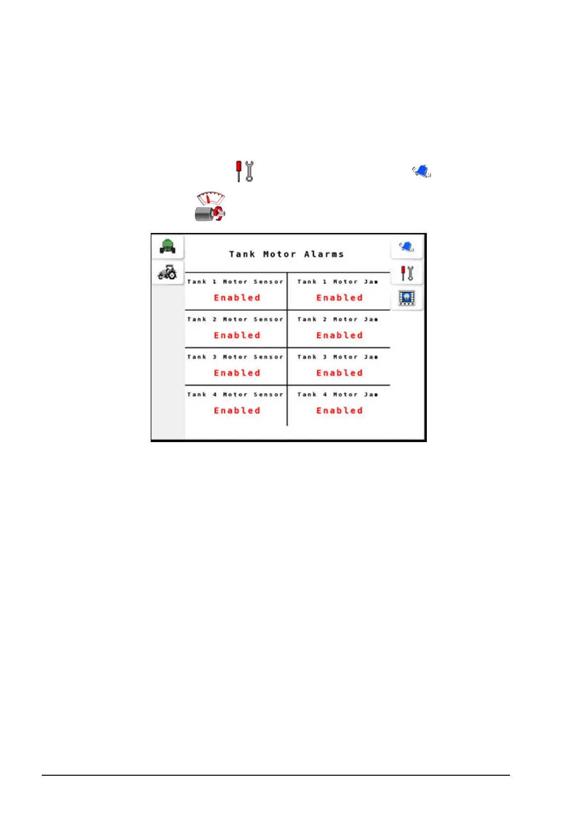 l Tank # Motor Jam: Enables the tank motor jam alarm.
