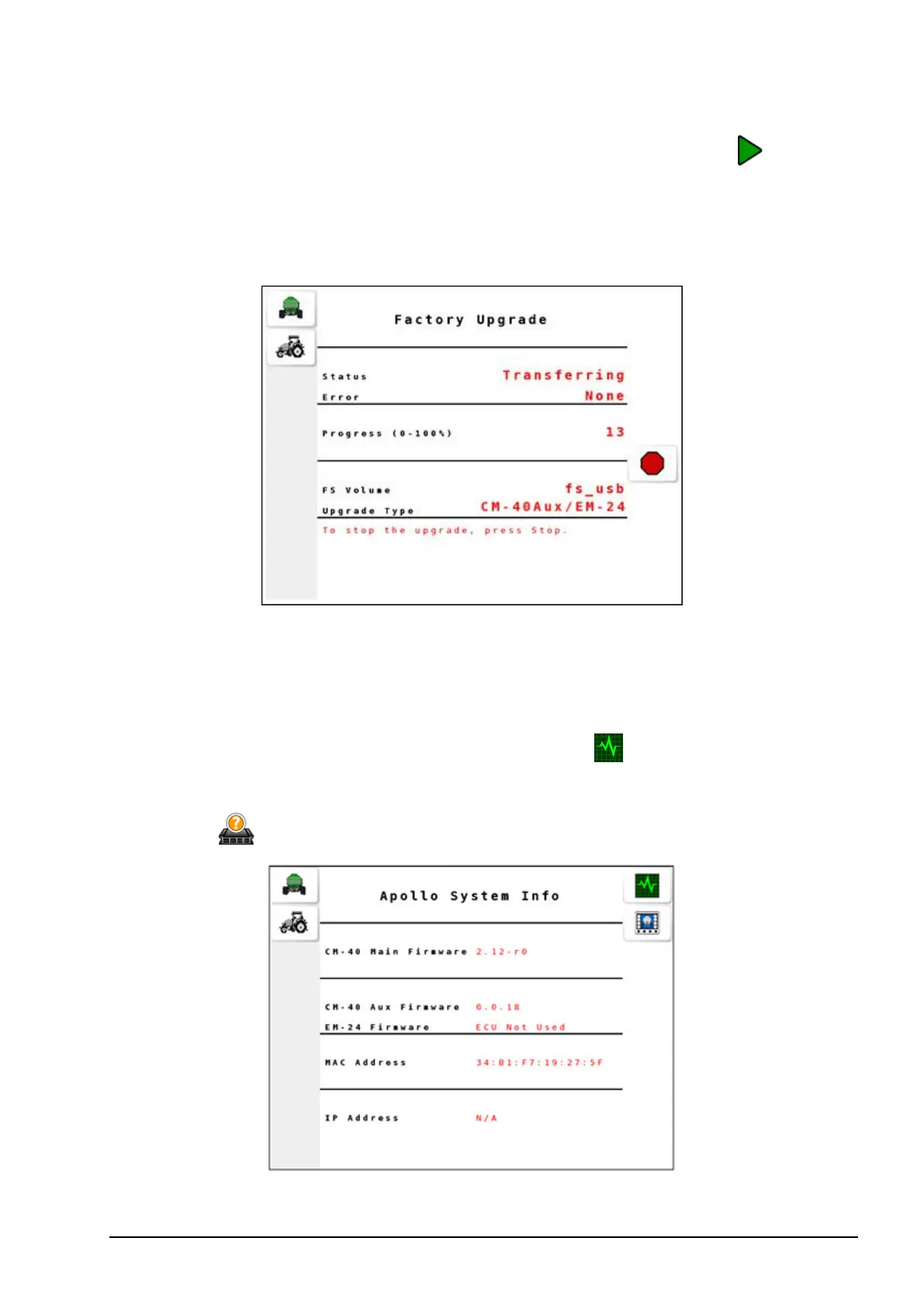 To verify the upgraded ECU version, select from the operation