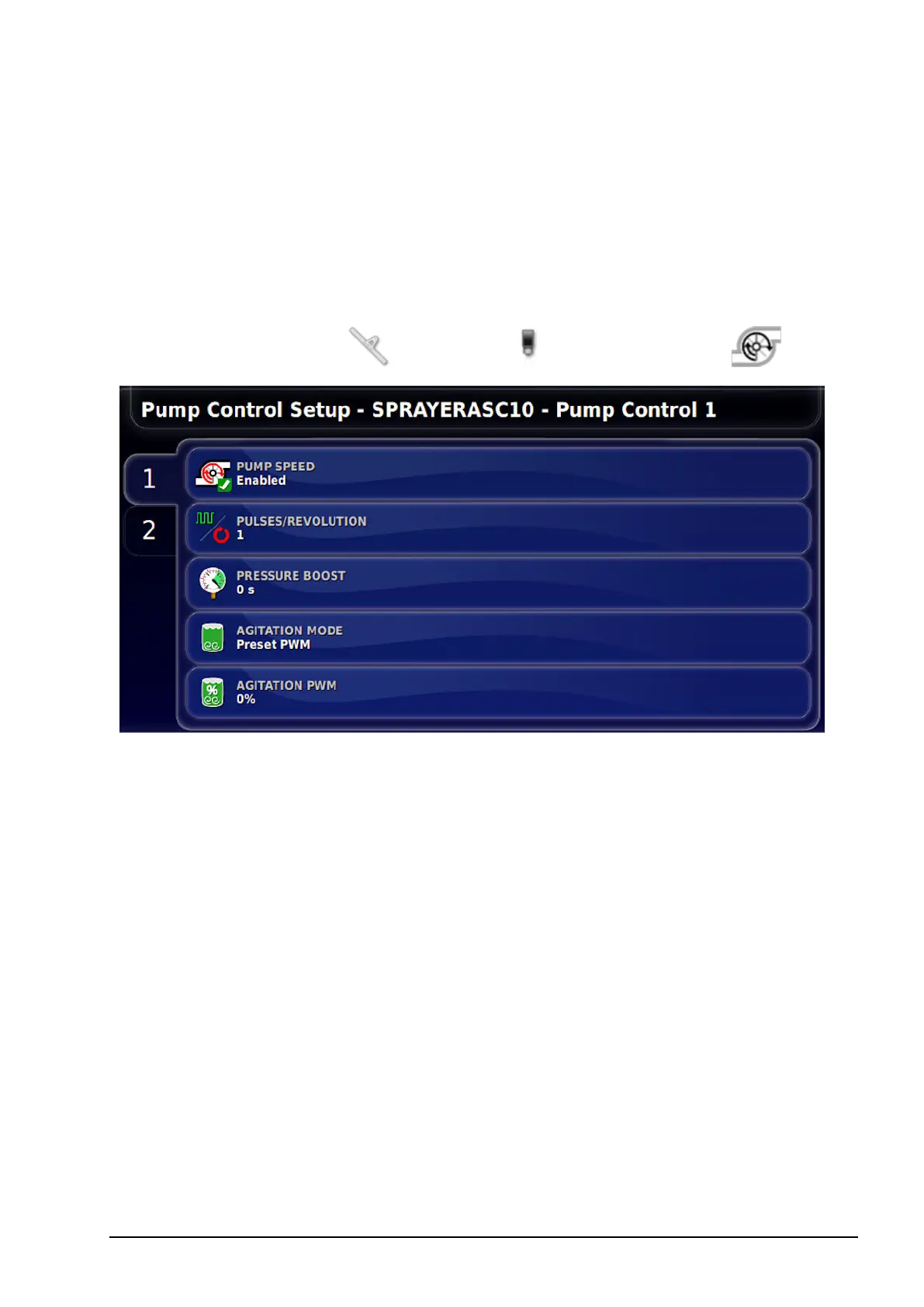 Select Implement / Sprayer / Pump Control .