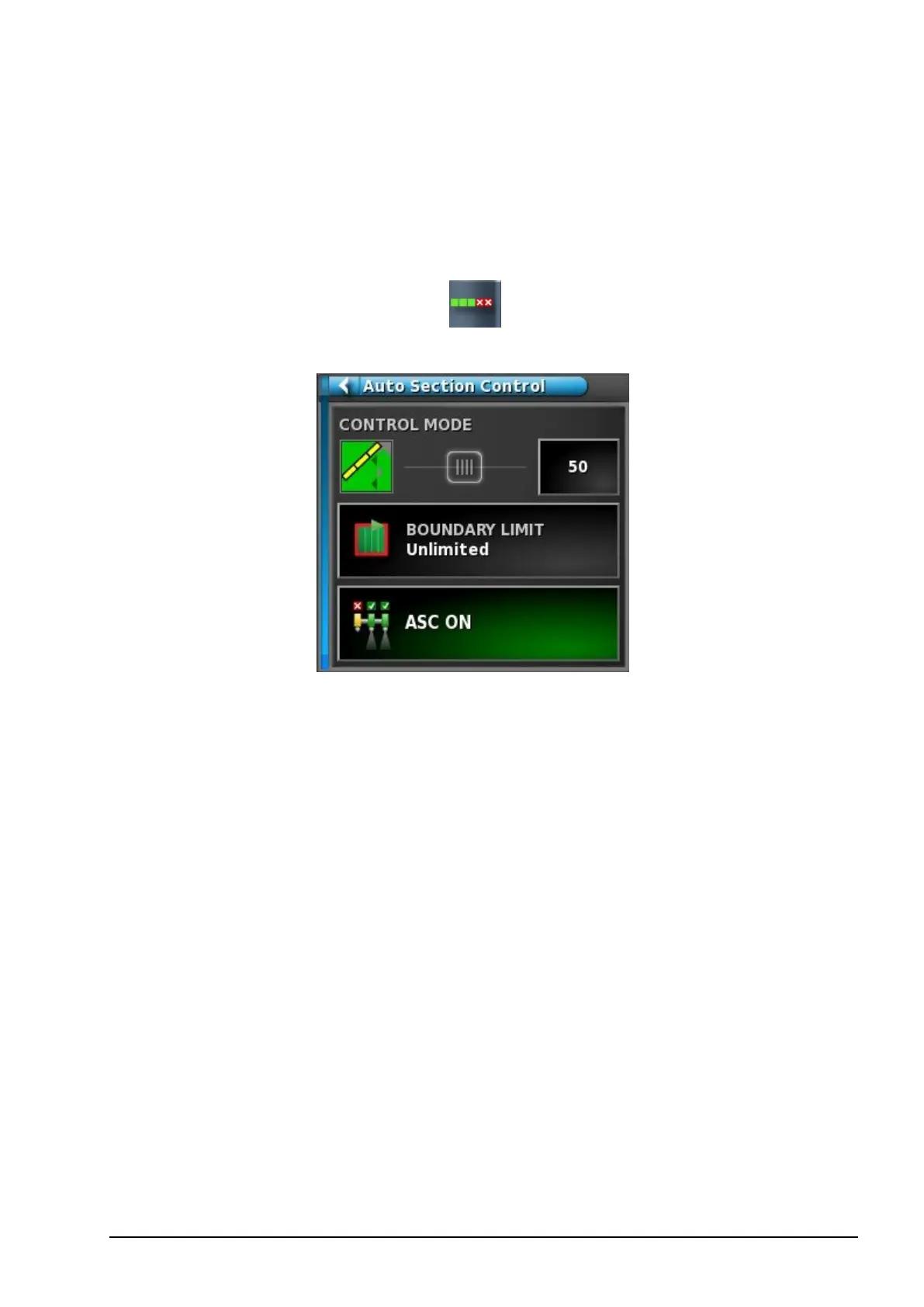 l ASC on/off: Turn auto section control on/off.