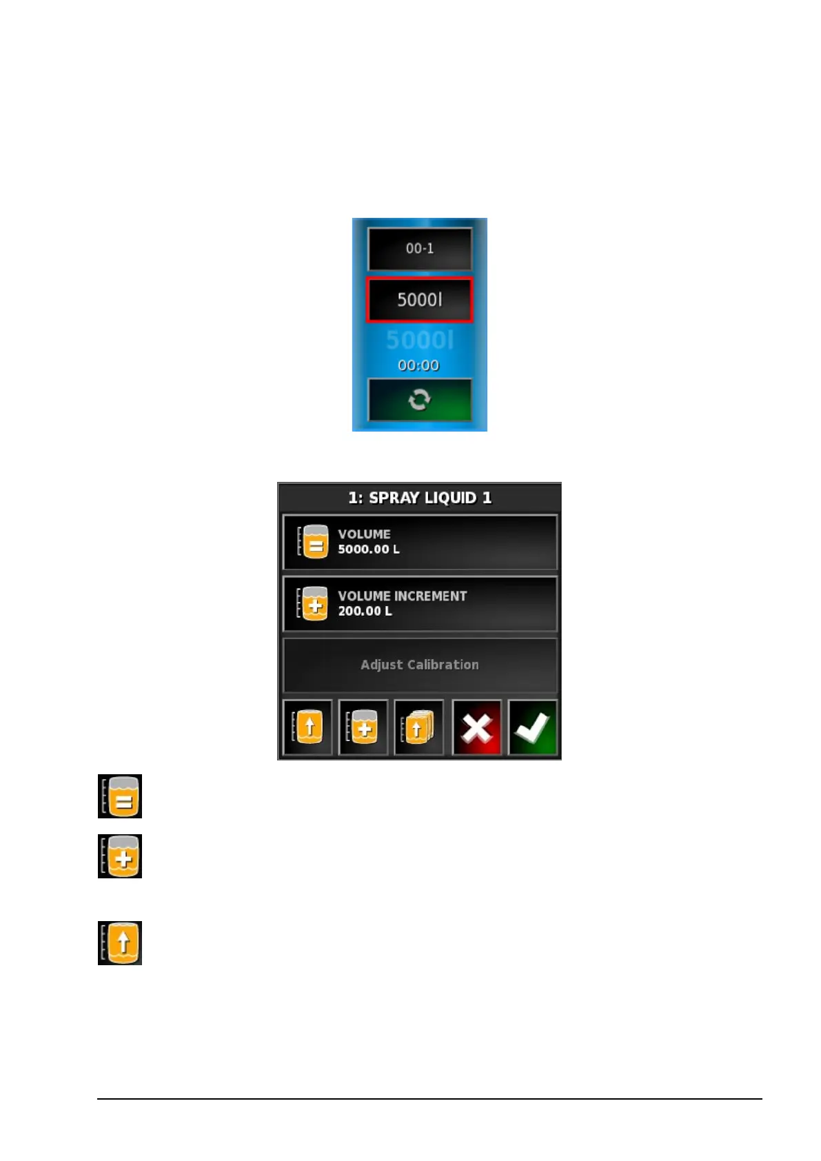 Set volume: Set the volume of product in the tank.
