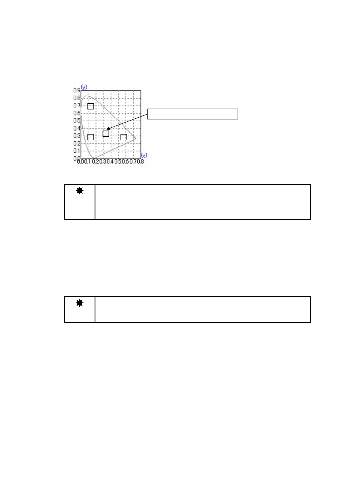 ・ The chromaticity area should be specified within the limits of 0.03 between