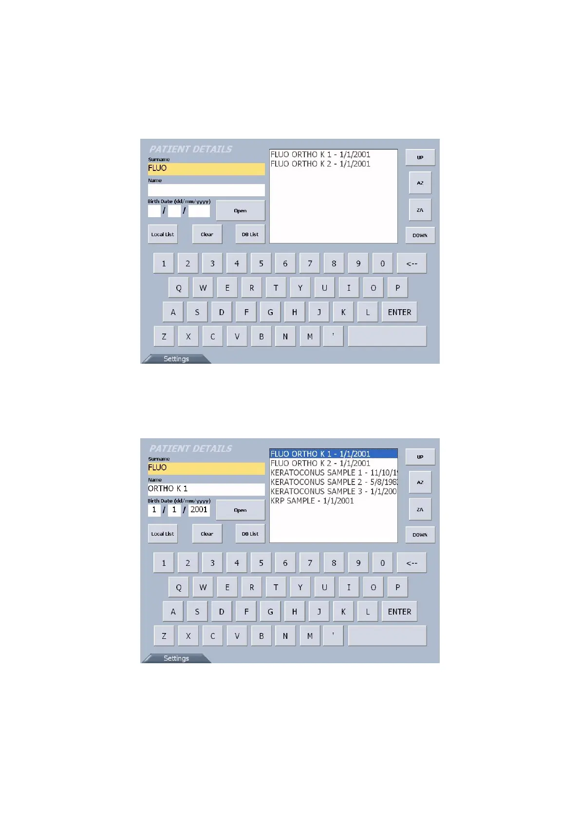 Press the “DB List” button to open the dialogue window with the PC: the patients list will appear in