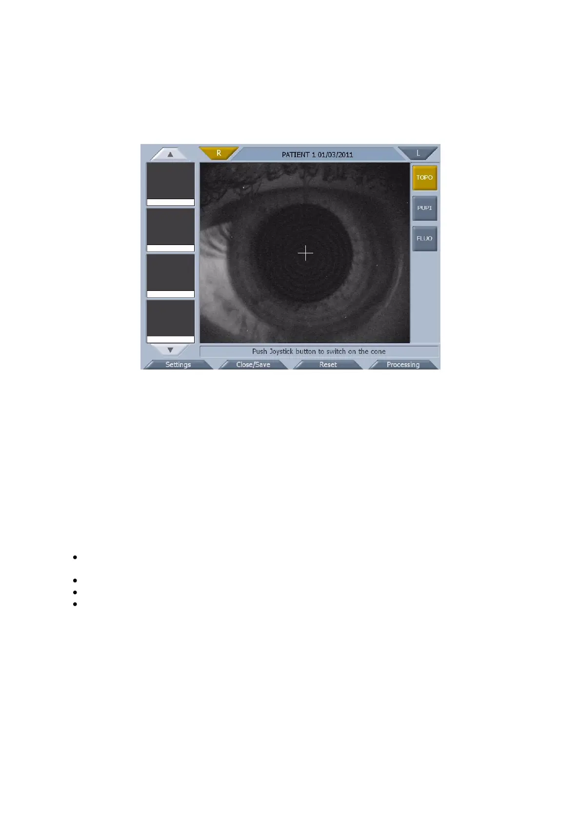 Press the “PUPI” button to acquire the Pupillometry images (fig. 1-14).