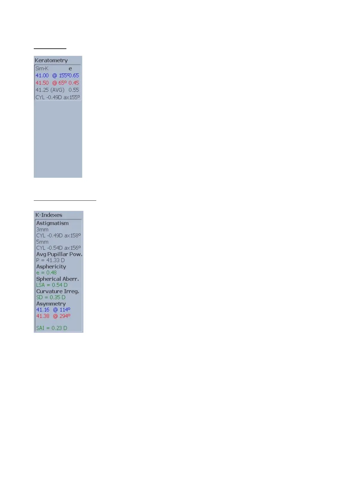 Tap on the ”K” button to view the keratometric data (fig. 1-27):