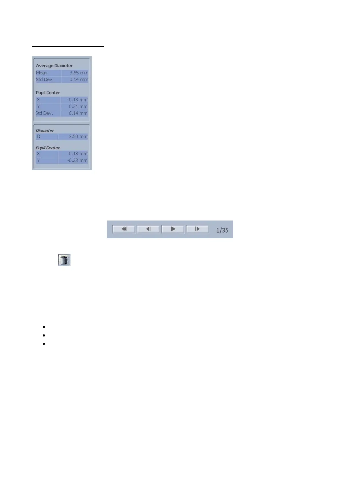 Tap on the “P”,”S”, “M” buttons to view the images of the pupil acquired in
