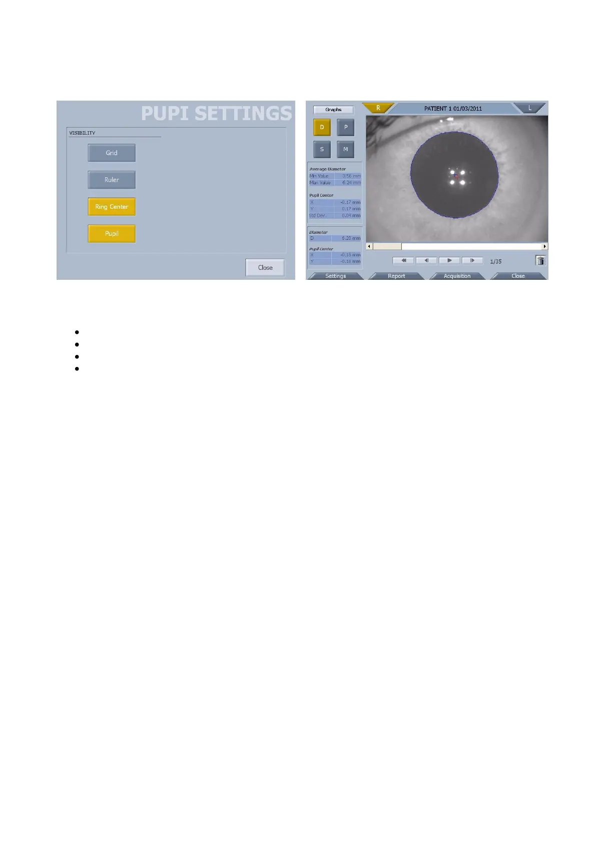 Ring Center: the center of the pupil will be displayed in blue and the fixation point in red