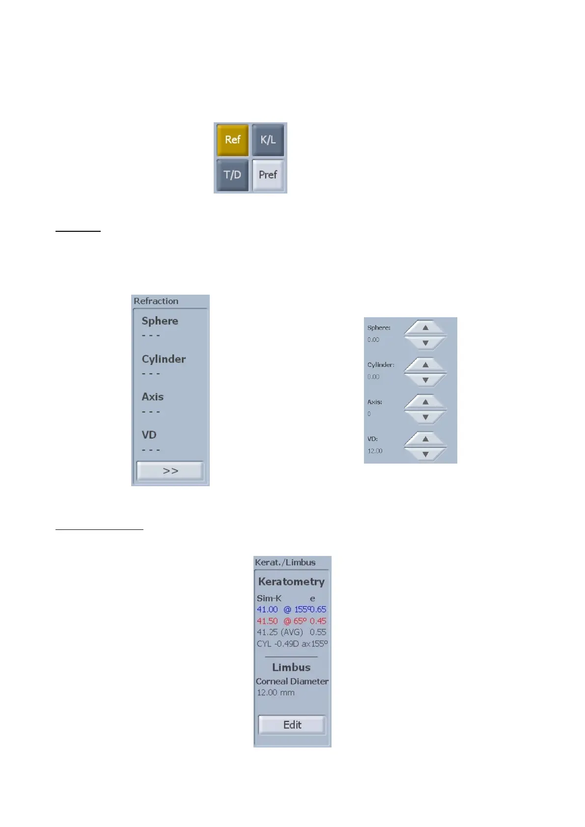 Tap on “>>” to set the refraction values (fig. 1-62). Use the arrow buttons to set the individual values. Select