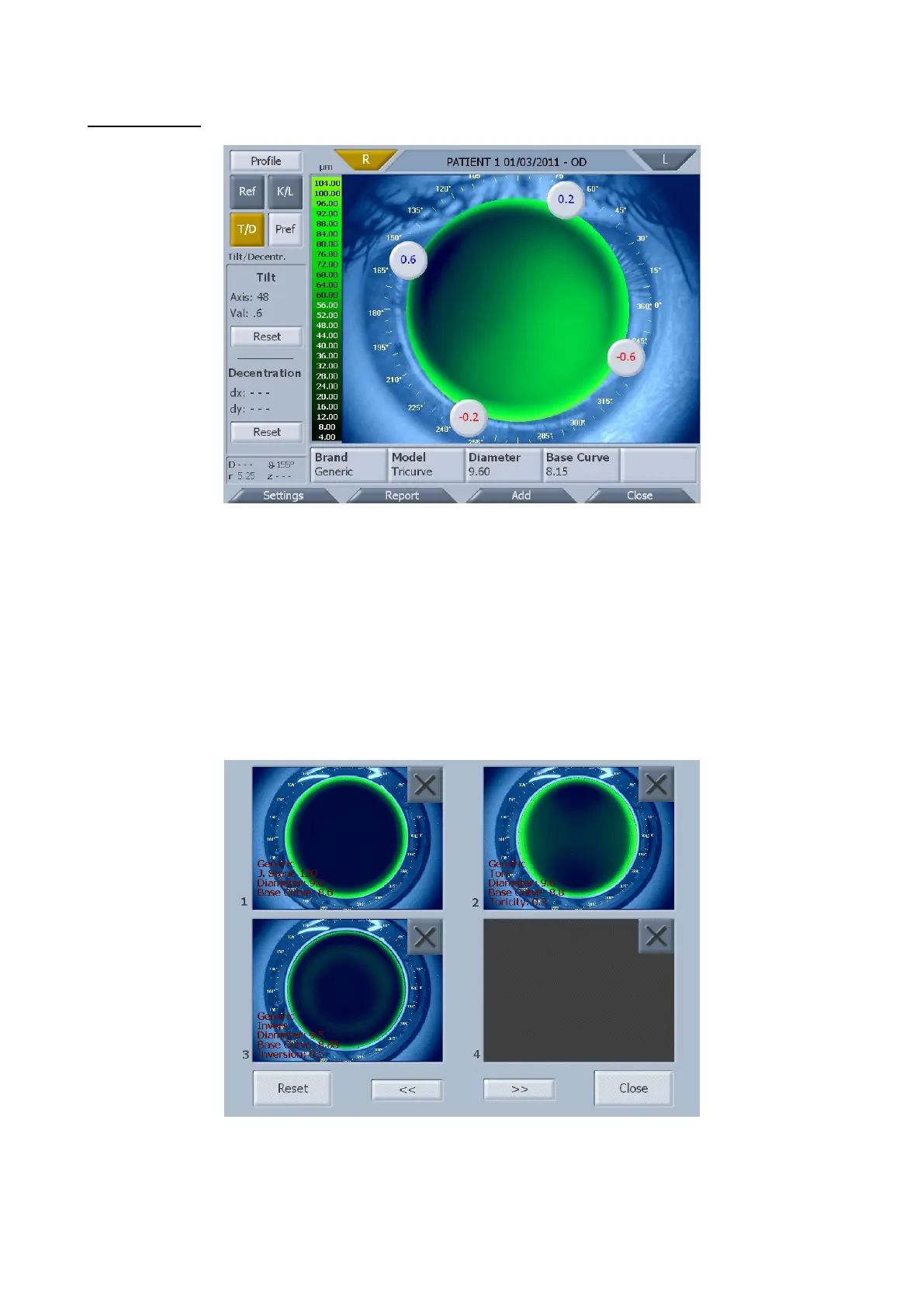 Displays the four buttons in lens simulation (fig. 1-64). Press the buttons to set the different tilt values. The