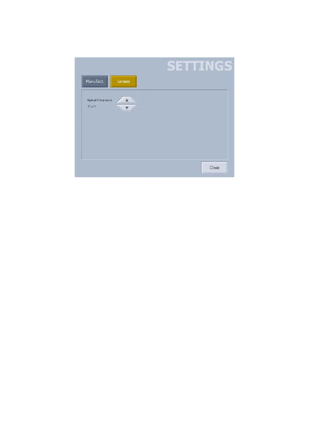 Set the apical clearance using the up/down arrows (fig. 1-67).