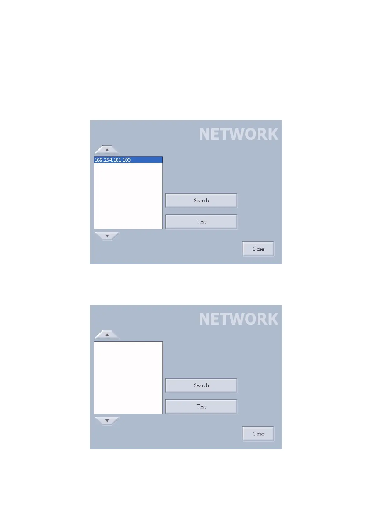 Press “Search” and “Test” to find and test the IP address for connection to the PC.