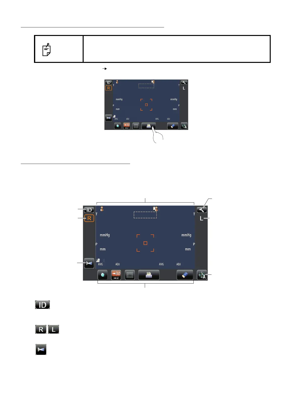 ID button...............................................Input the patient ID (up to 13 characters) and operator ID (up