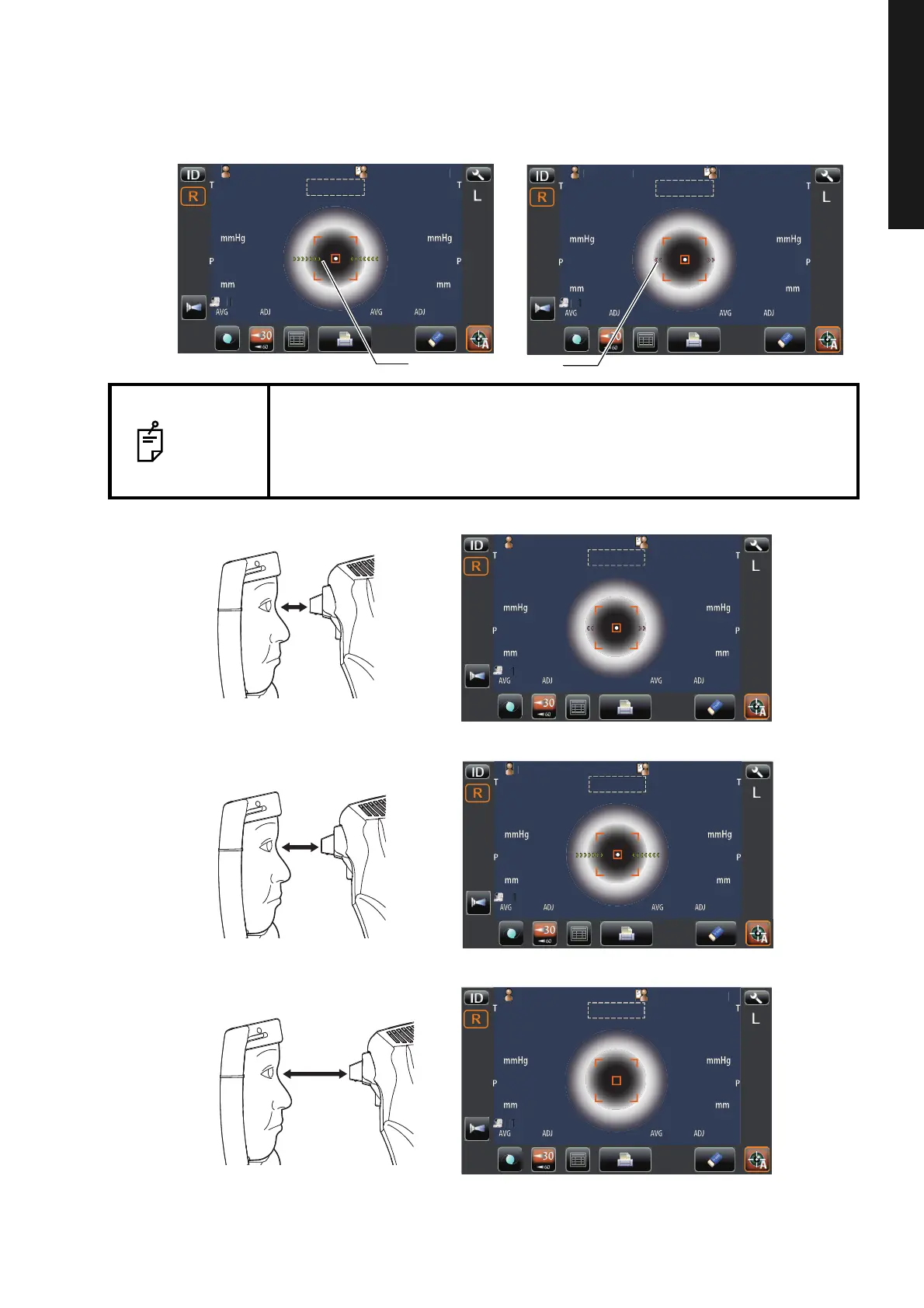 • Do not allow the eyelash and eyelid to cover outer alignment mark to