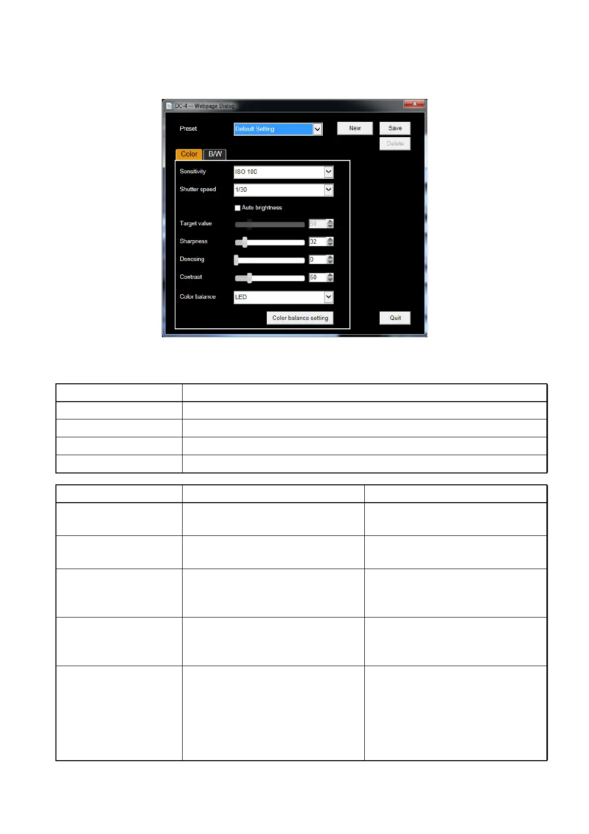 On "Photography parameters setting dialog box", you can add or delete the preset data and set the