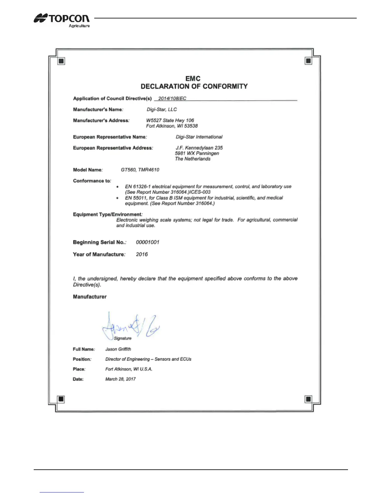 Topcon DIGISTAR TMR4610 - 18 Declaration of Conformity