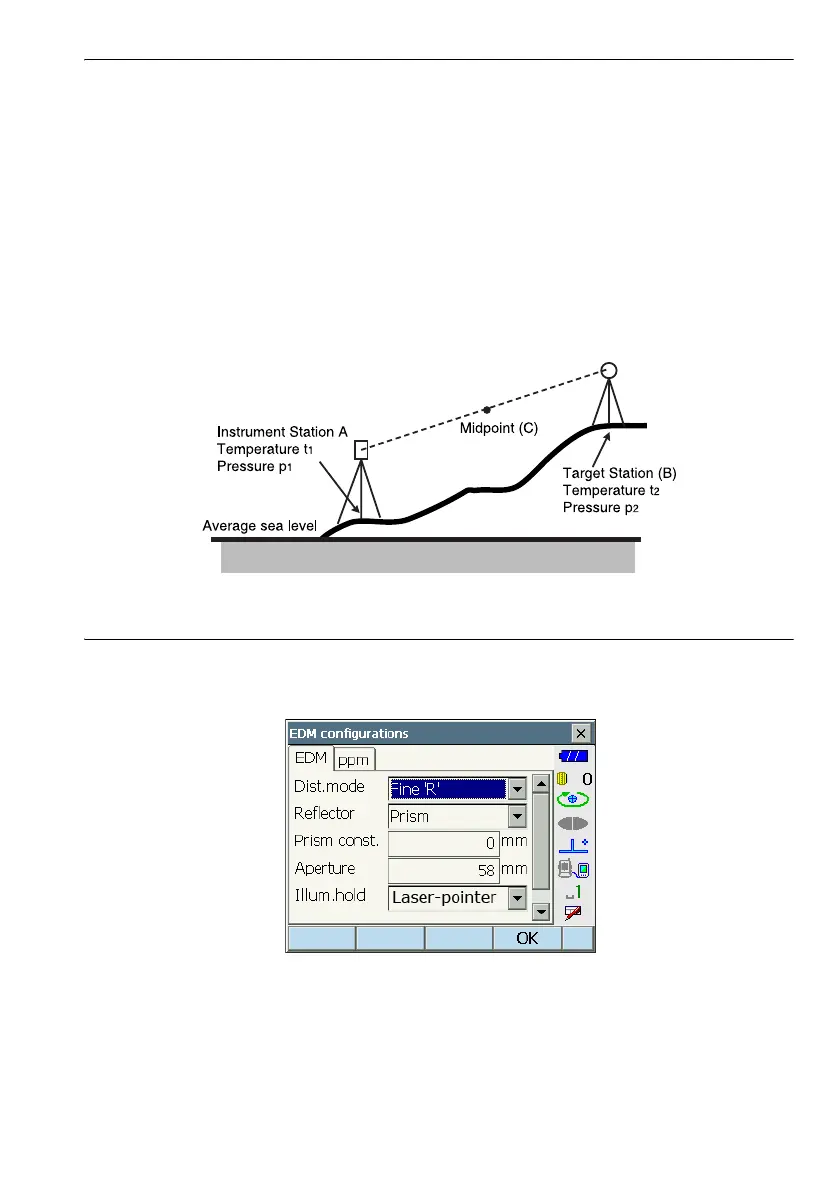 • Enter the average temperature, air pressure and humidity along the measurement beam route