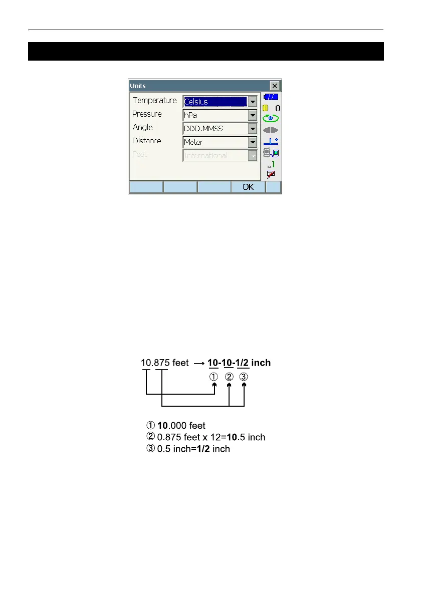 • OS rounds off the value input by the digit of less than 0.004 feet/0.017 inch.