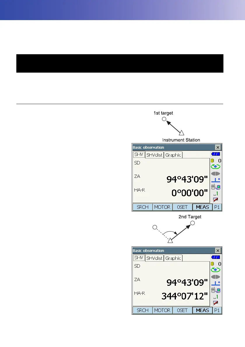 This section explains the procedures for basic angle measurement in Observation mode.
