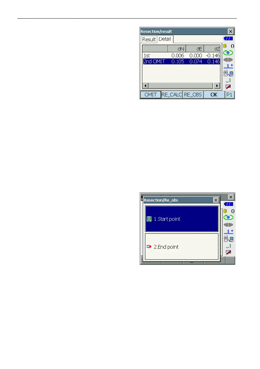 9. Press [OK] to finish resection measurement and