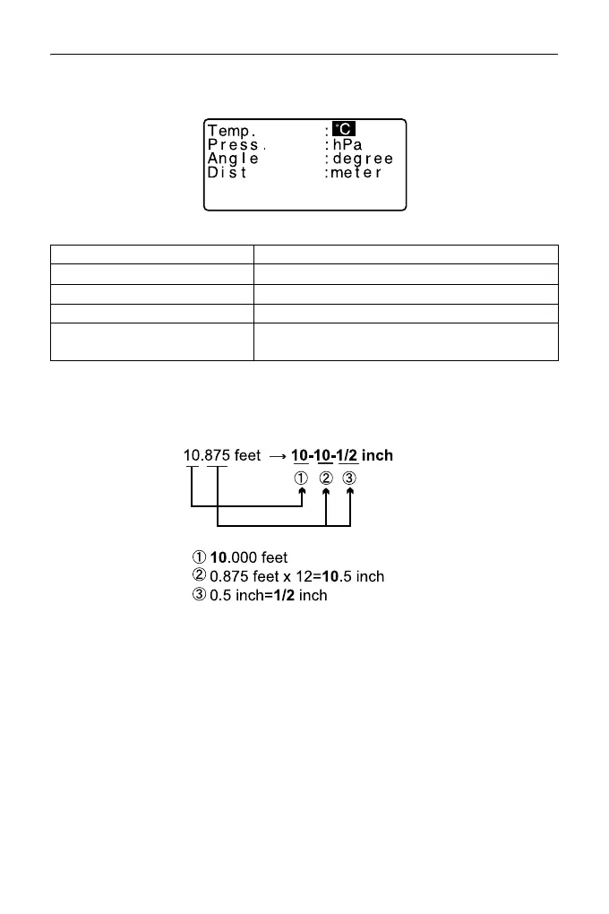 In addition, when the “inch” display exceeds the range, it is displayed in “feet”.