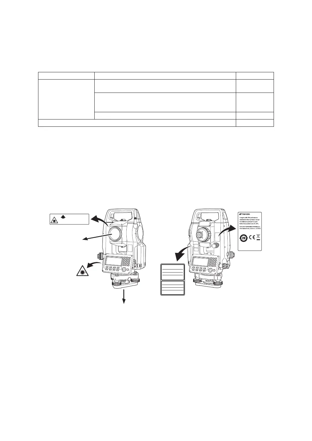 • EDM device is classified as Class 3R Laser Product when reflectorless measurement is selected. When the