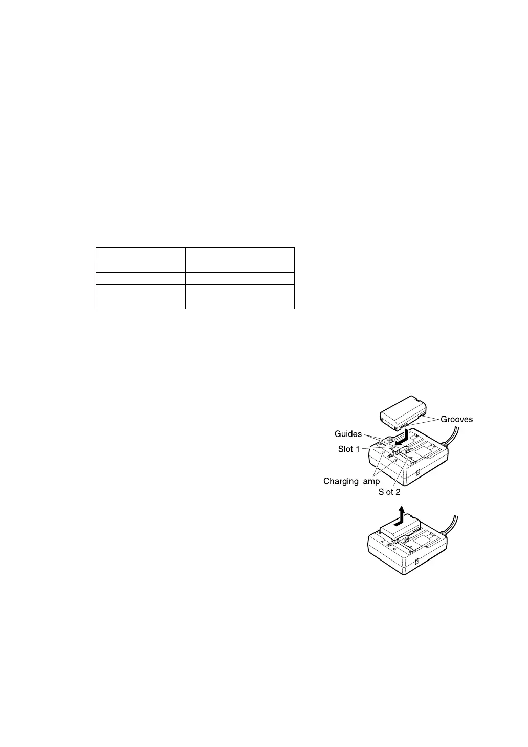 • Slots 1 and 2: The charger starts charging the battery mounted first. If you place two batteries in