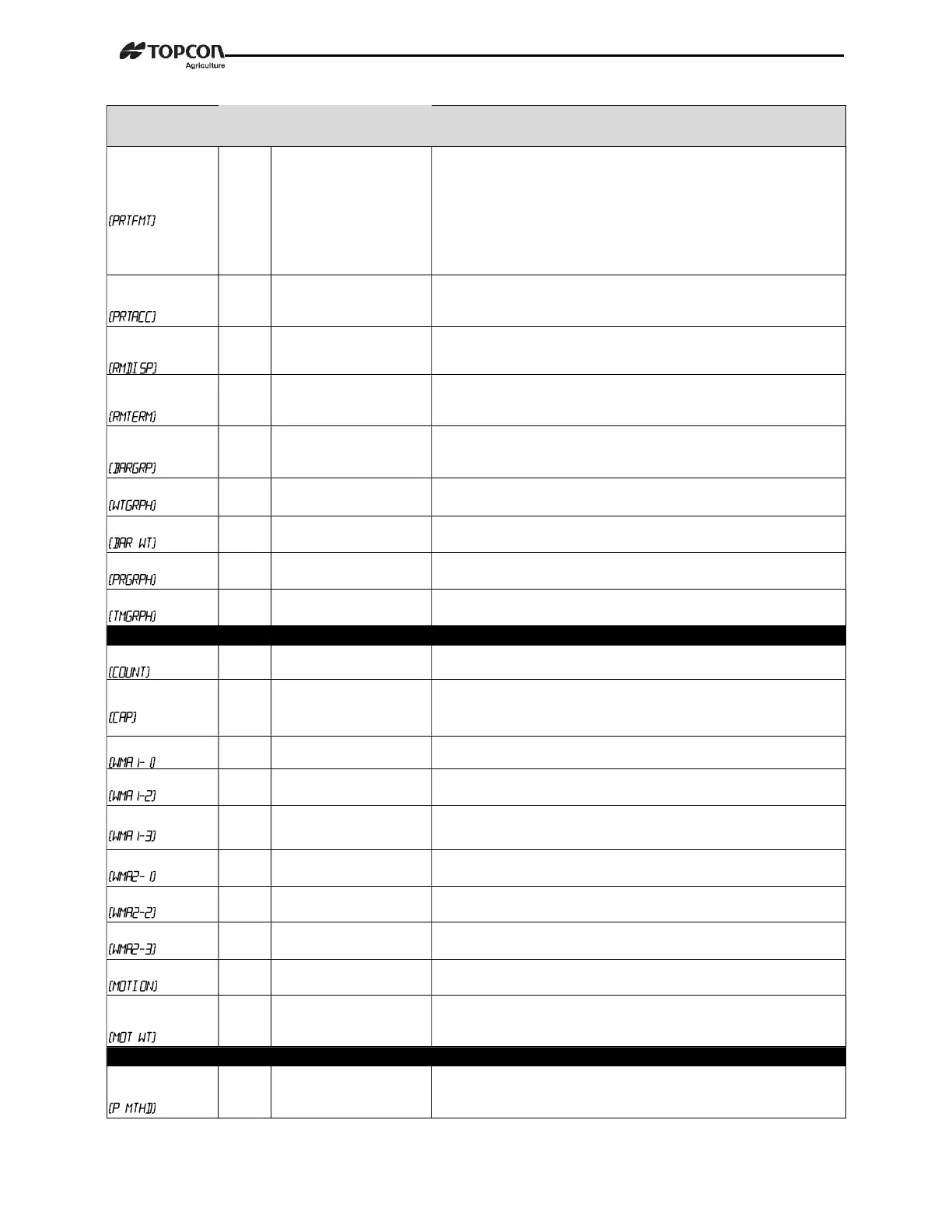 4001 WEIGHT, PERCENT Select weight or percentage method for pre-alarm