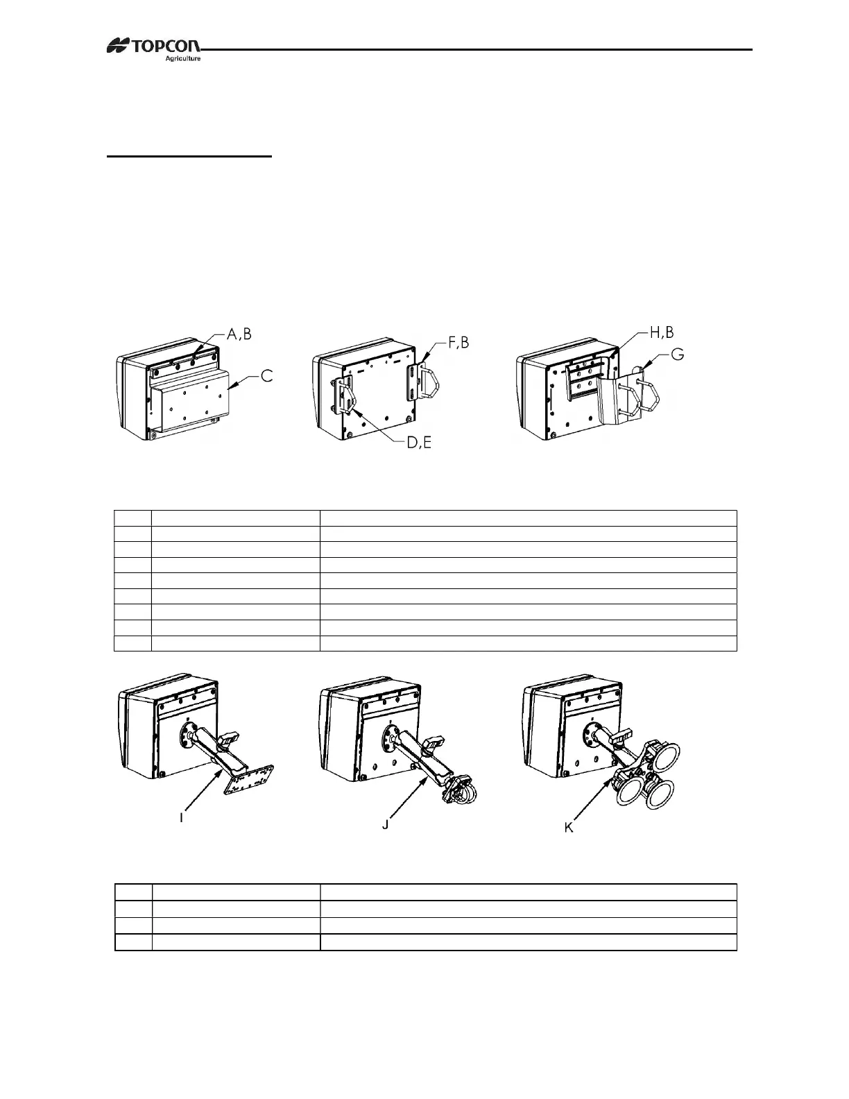 and placement of the Indicator. The following section provides a list of the optional mounts.