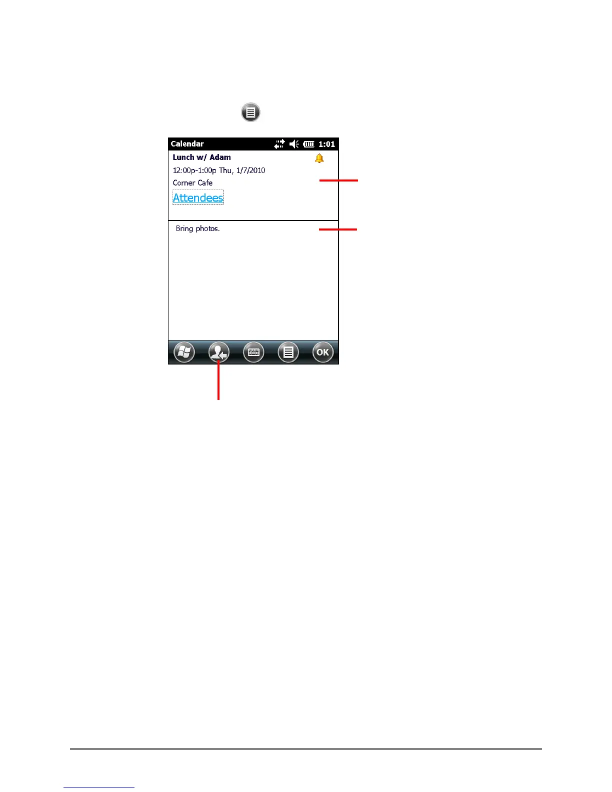 When you tap an appointment in Calendar, a summary screen is displayed. To