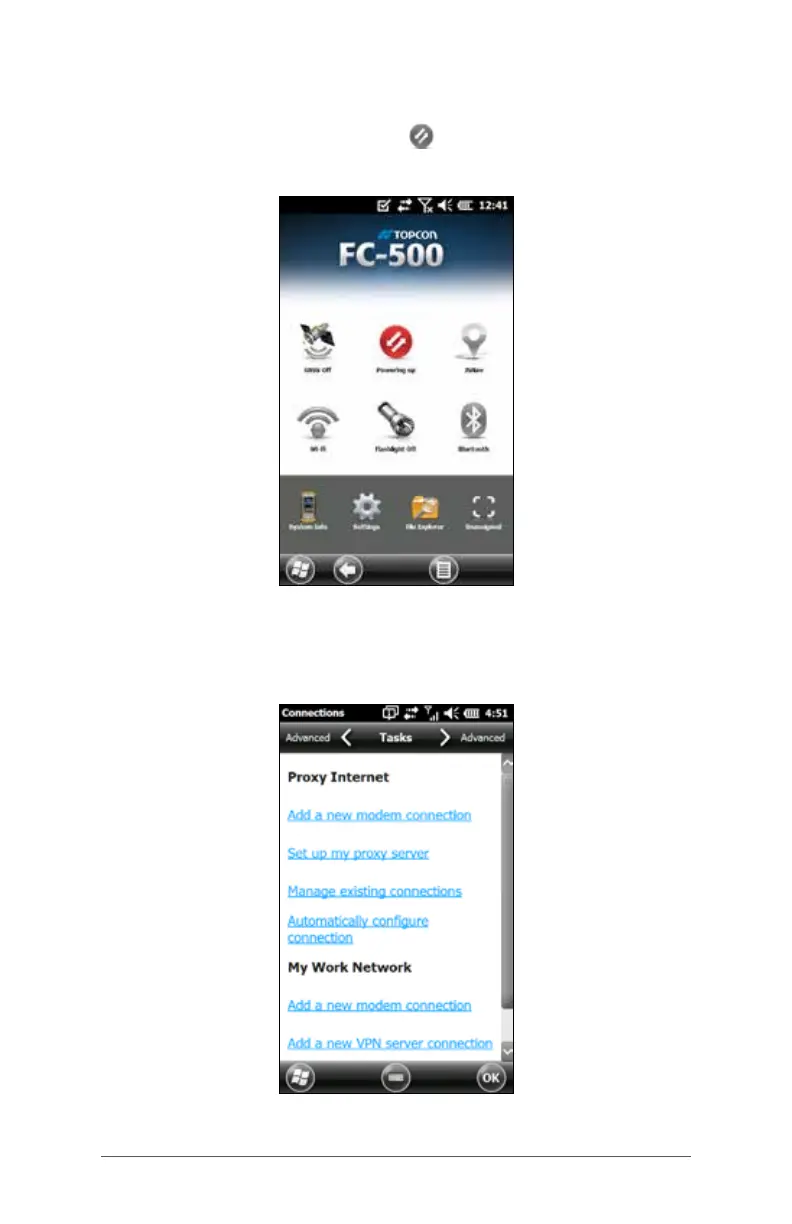 connection. Tap and hold the modem gadget to open the