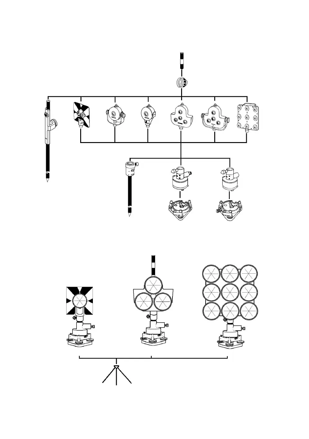Use the above prisms after setting them at the same height as the instruments. To adjust the height of