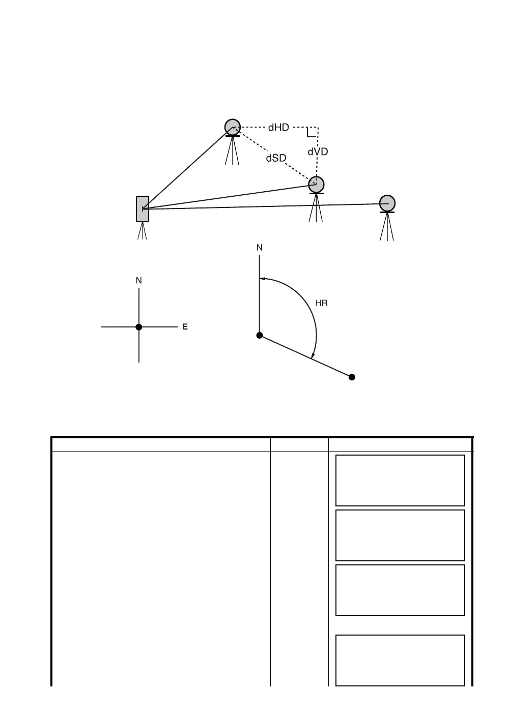 Measurement for horizontal distance (dHD), slope distance (dSD), elevation (dVD) and horizontal