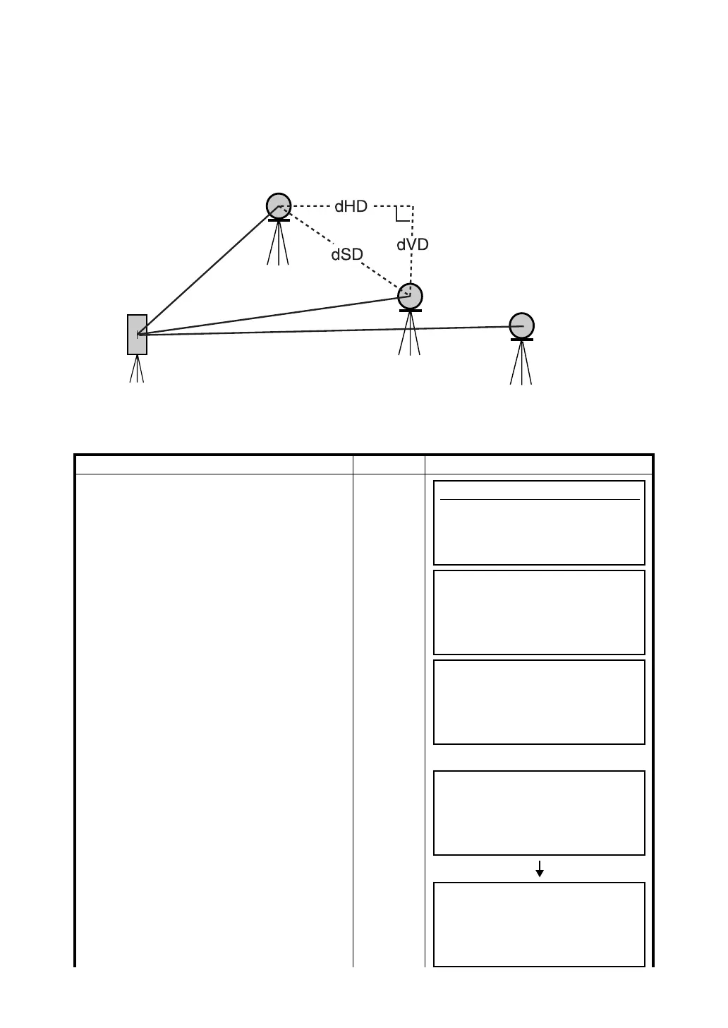 (dSD) and elevation (dVD) between two target prisms.