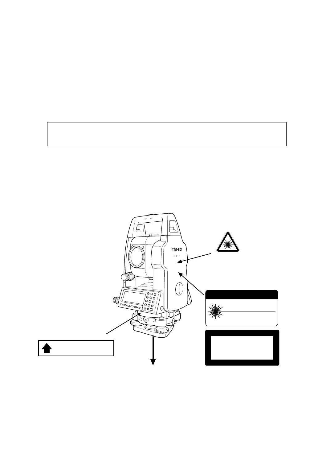 Since Laser radiation is emitted from the GTS-600 series Laser plummet type instruments, please refer