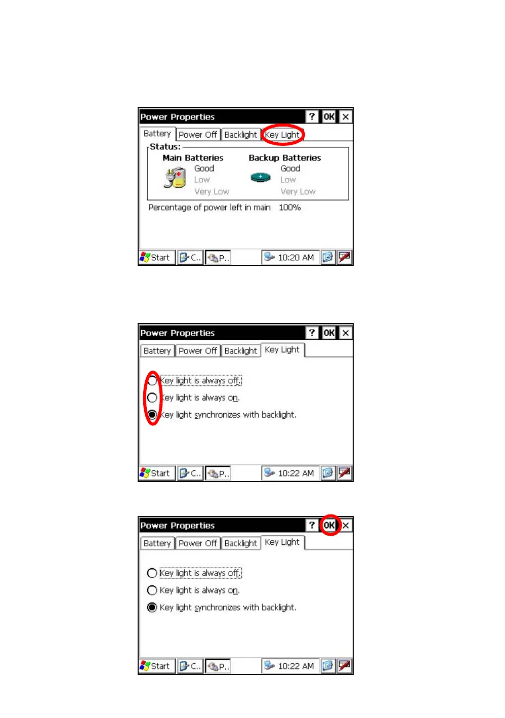 3 Press the [OK] key on title bar. After that "Power Properties" screen will close automatically