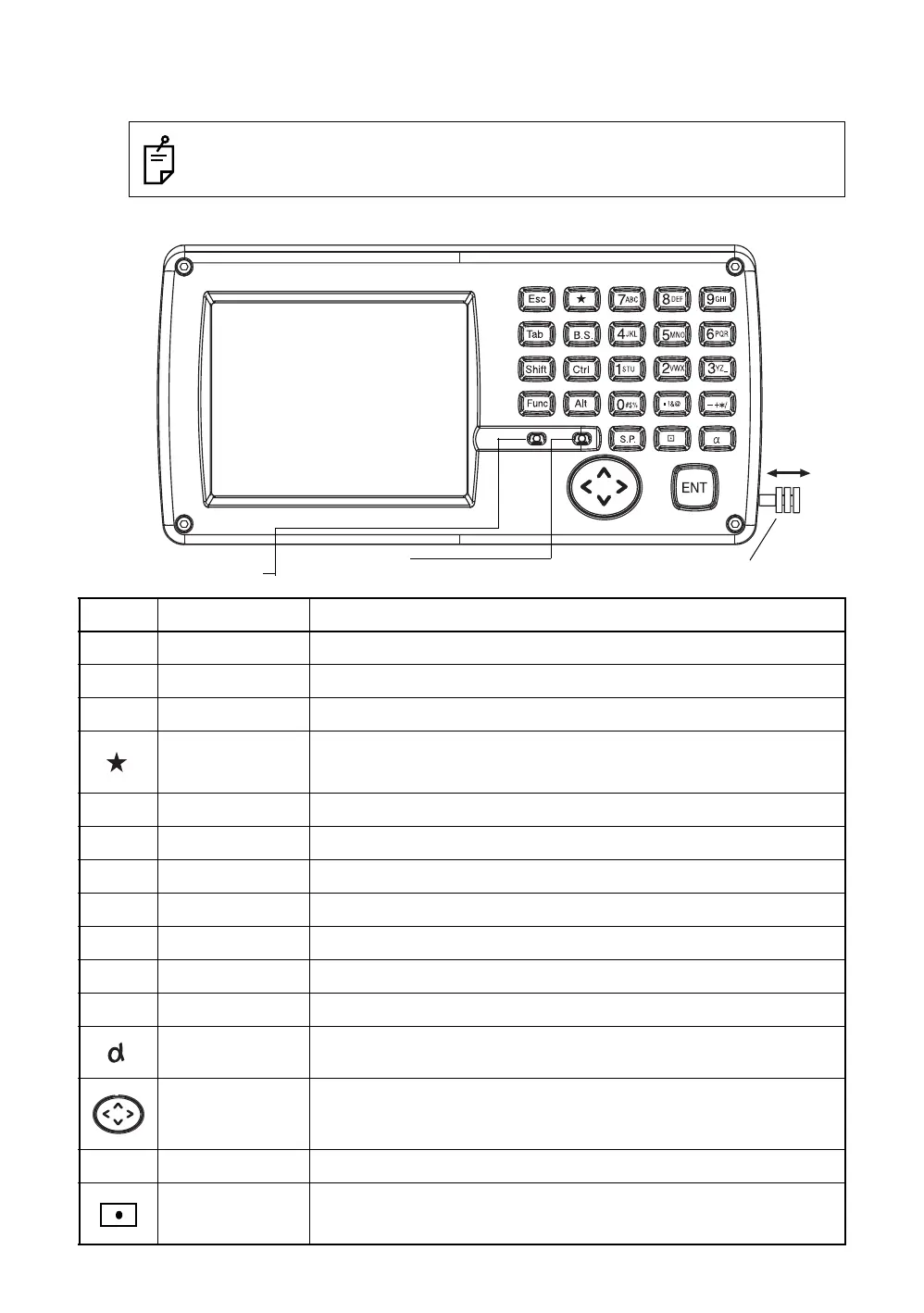 Shift key Used with other keys. Refer to "1.2.5 Shortcut Keys".