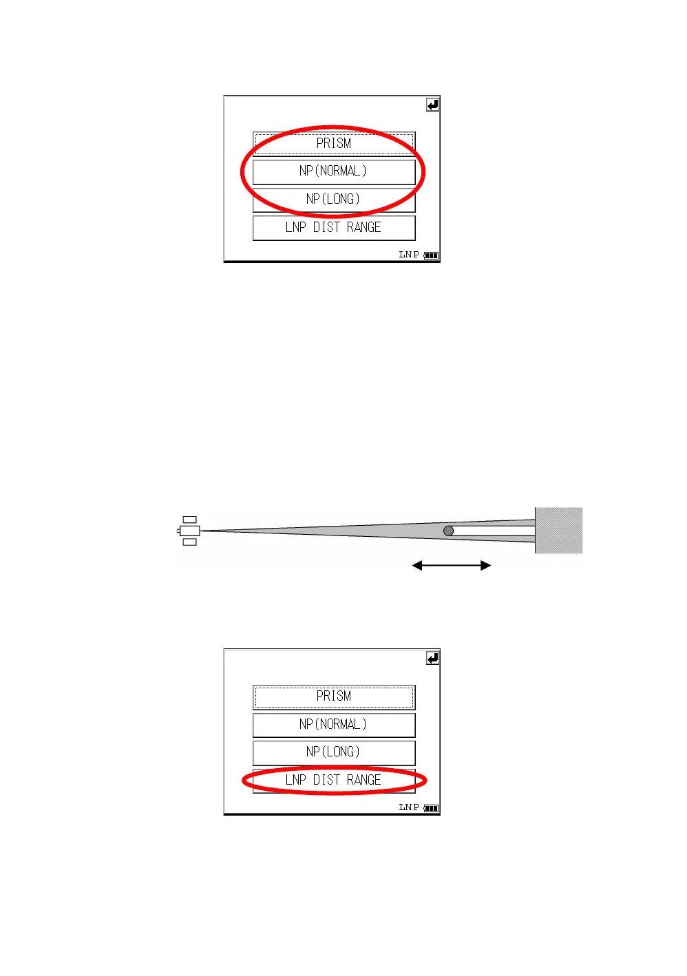 Pressing the [Prism / Non-prism / Non-prism long switching] icon displays the following screen.