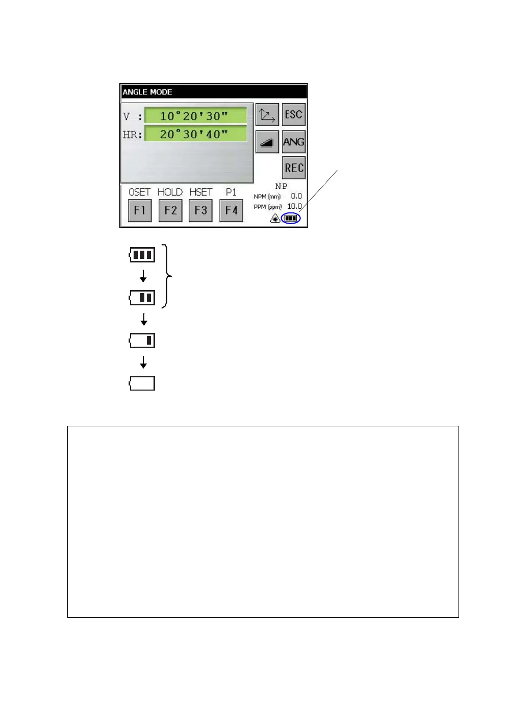 3) The battery power remaining display shows the power level regarding to the measurement