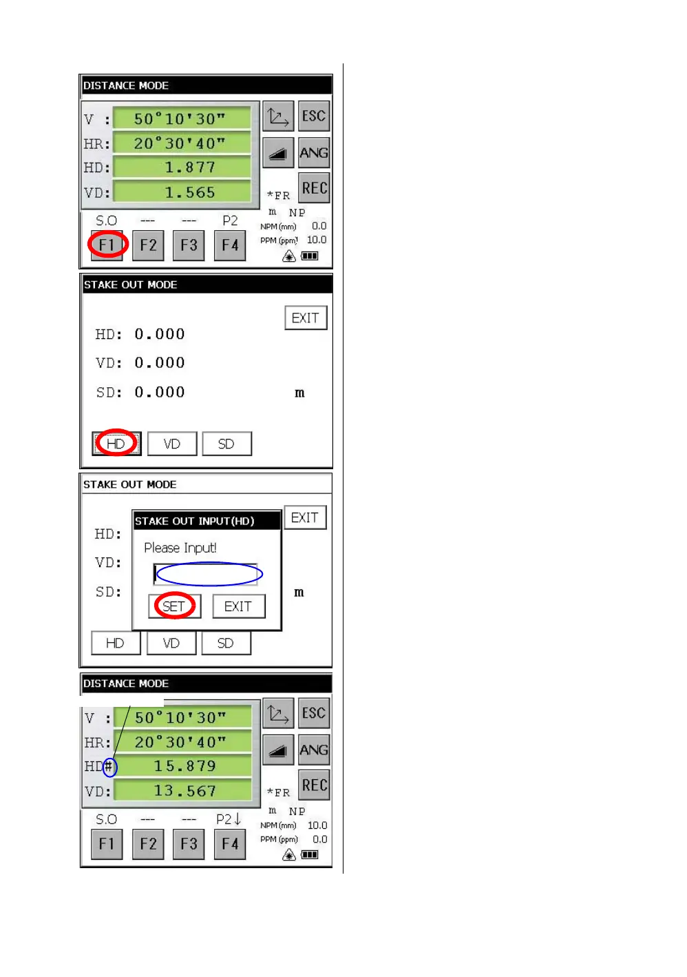4 Enter the horizontal distance for stake out.
