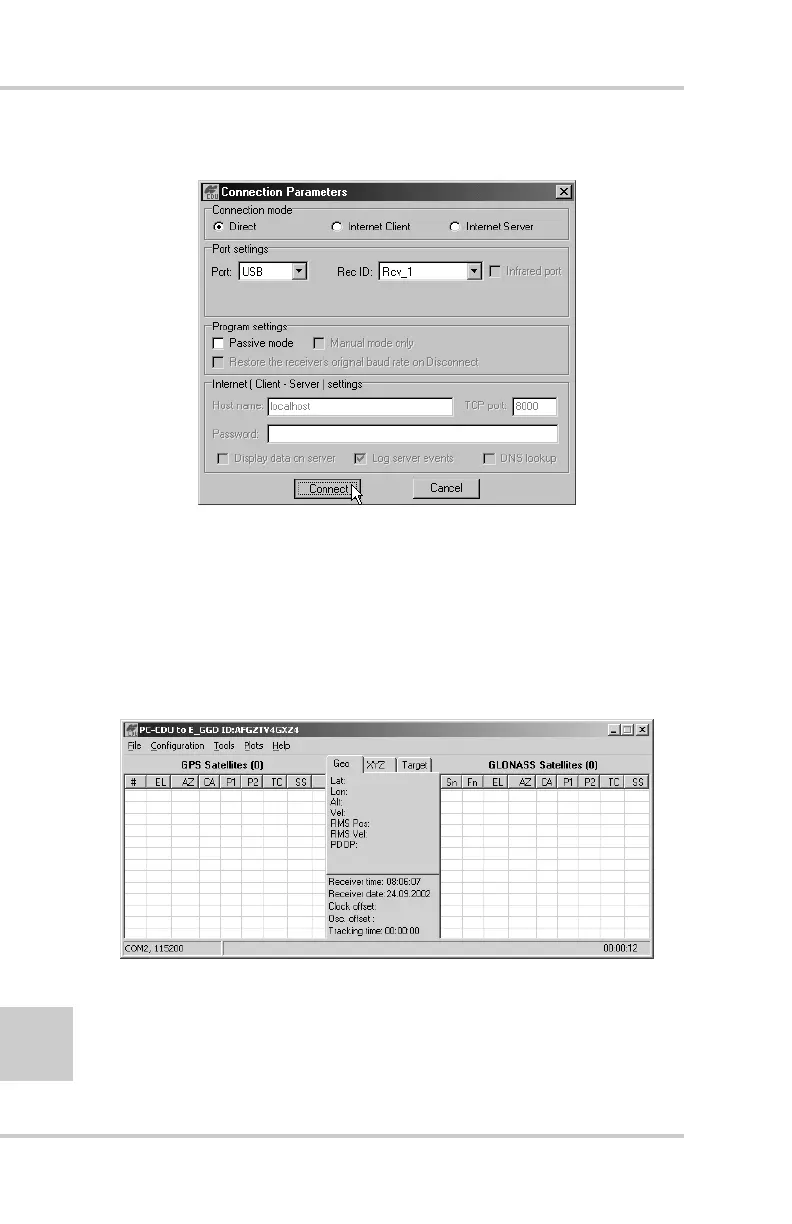 Once a PC-CDU connection with the receiver has been