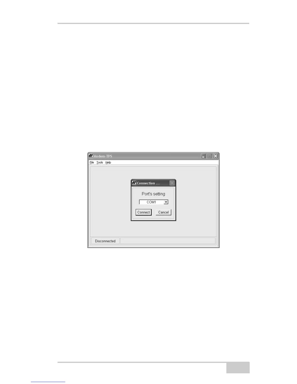 1. To connect to Modem-TPS, use an RS232 cable or Bluetooth