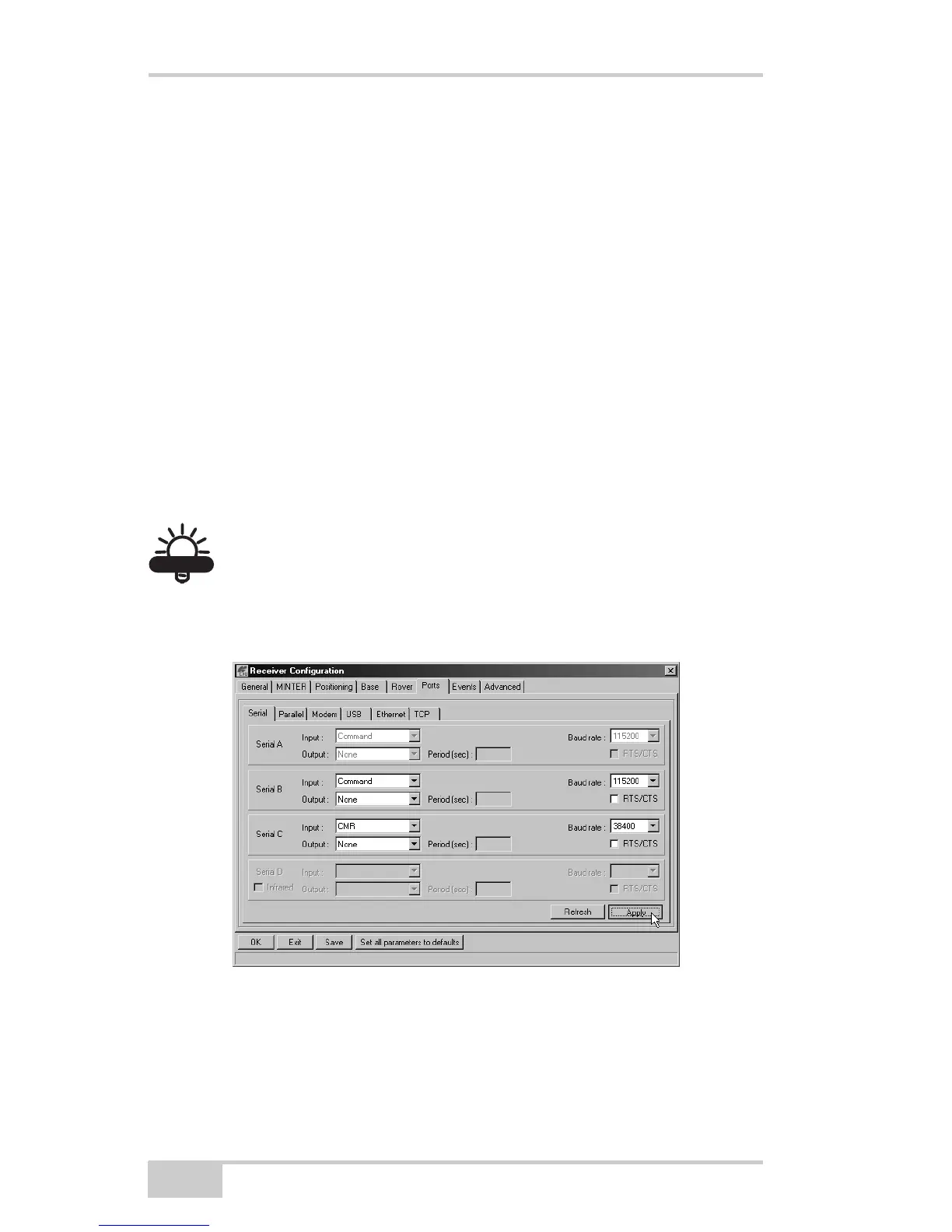 6. Click the Ports tab and set the following parameters for Serial C