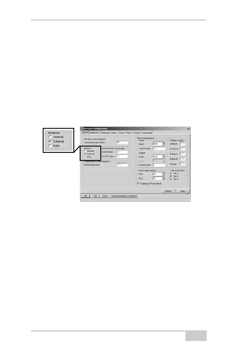 3. On the General tab, select the External Antenna option and click