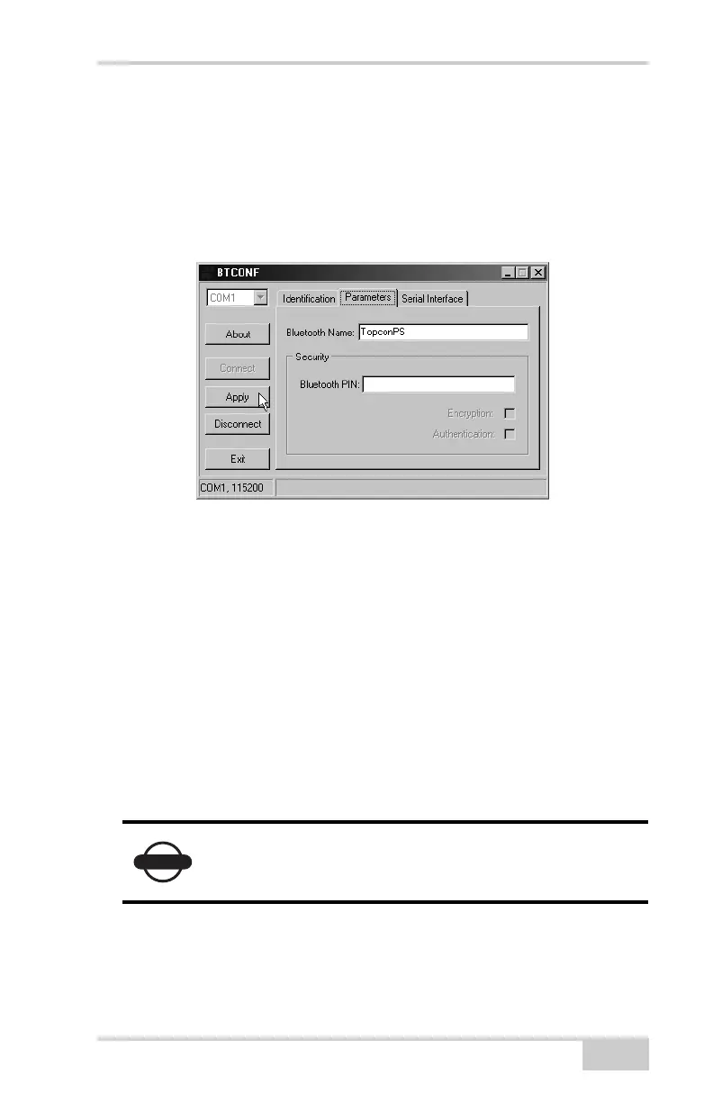 • Encryption – enable to have the Bluetooth module encrypt
