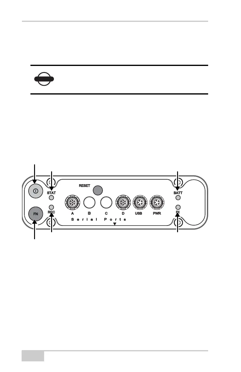 and FN) that control the receiver’s operation, four LEDs (STAT, REC,