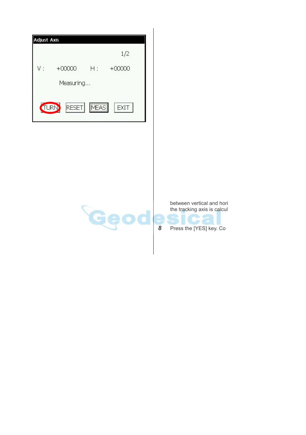 Axis dist Error.(2)”. The distance between the instrument and prism should be more than 35m.