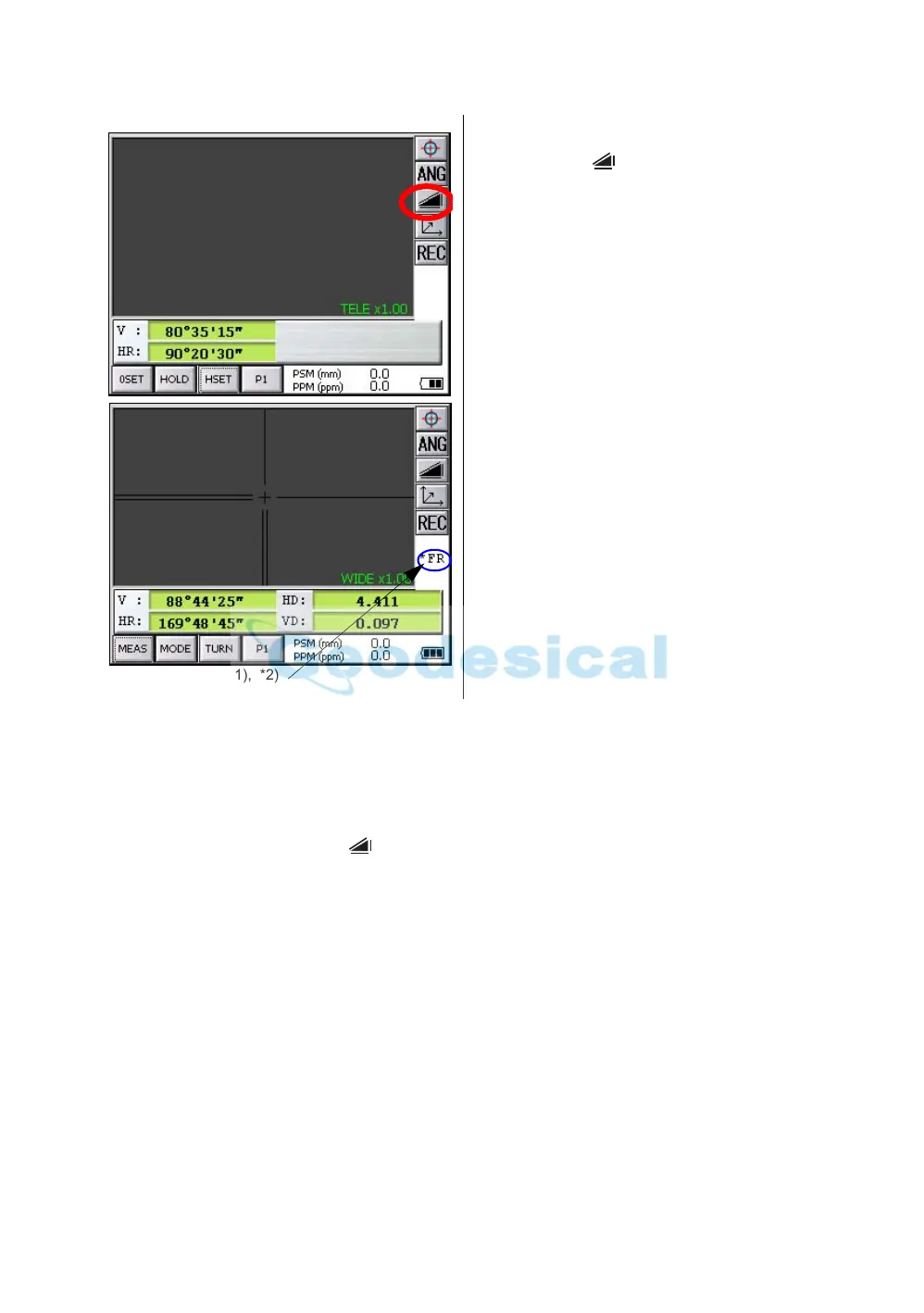 *7)To return to the angle measurement mode, press the [ANG] key.