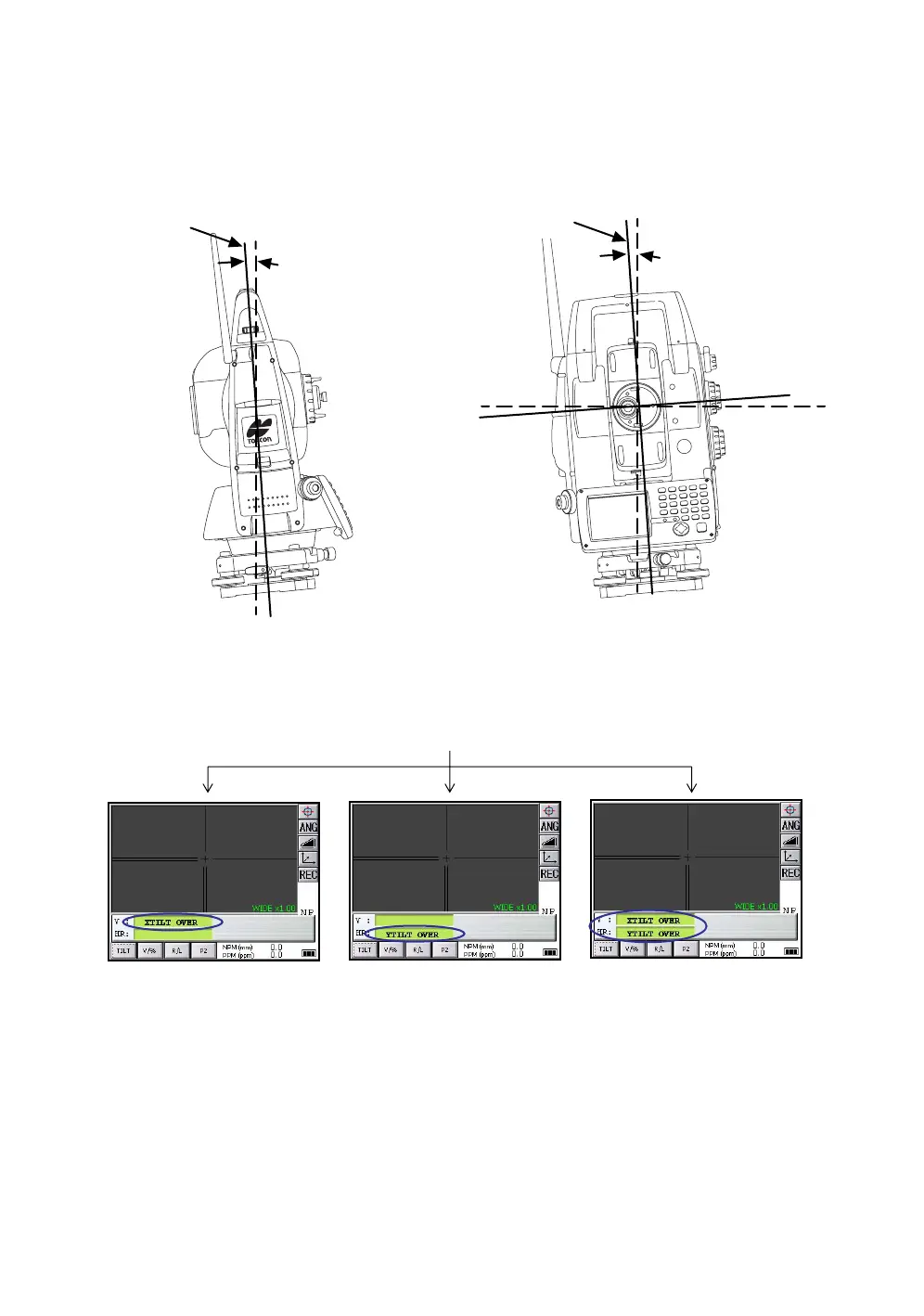 to fine level the instrument. If the (TILT OVER) display appears the instrument is out of automatic