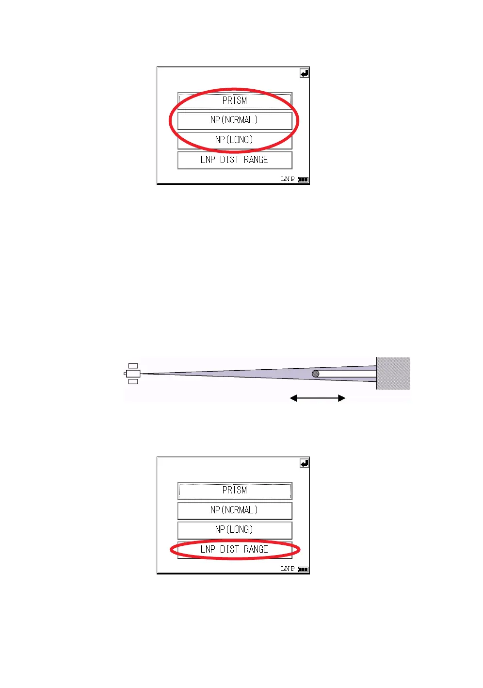 Pressing the [Prism / Non-prism / Non-prism long] icon displays the following screen.