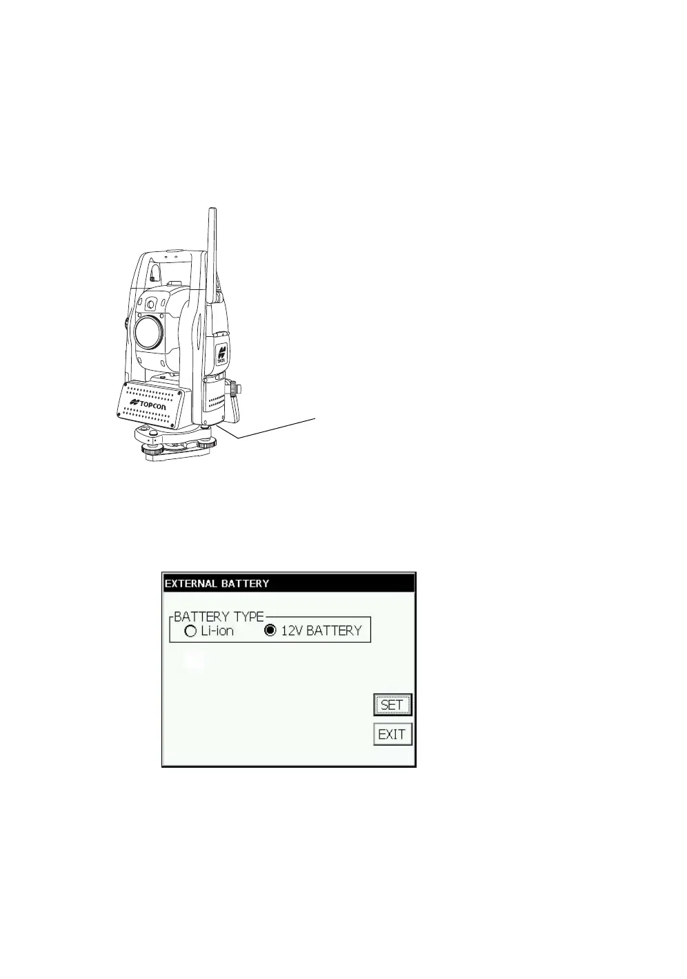 When using an external battery, select the battery type, either “Li-ion” or “12V BATTERY.”